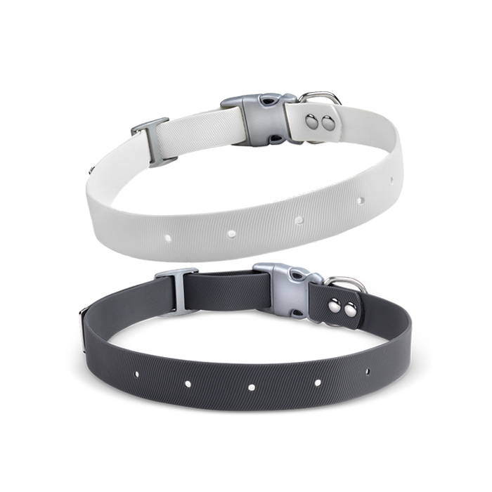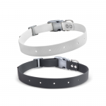 Our custom Halo Strap is rugged, flexible, and durable, for use in any environment. The rubberized coating is waterproof, odor-proof, and easy to clean to remain dirt-and-stain-free. With pre-cut holes and a custom clasp featuring a no-slip grip, this strap attachment for the Halo Collar is fast and easy to clip on and off from around your pup. This adjustable strap comes in 3 sizes and is easily replaceable as your dog grows for the ultimate flexibility.